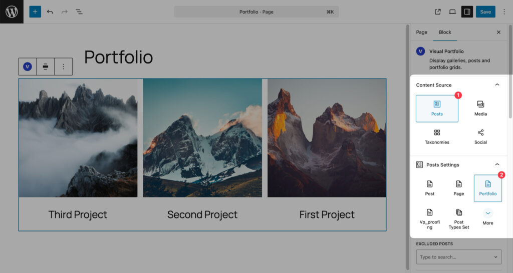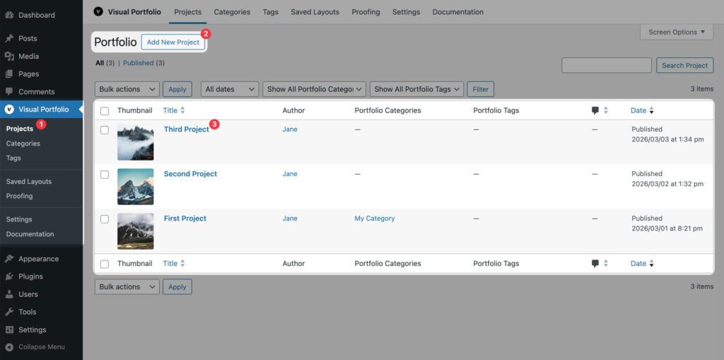 Projects in Visual Portfolio are the foundation of your portfolio. They allow you to: